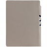 Гибкая обложка выполнена из материала Velour Melange, серый СС и Latte, синий НН (внутренняя часть обложки). Внутри корешка — специальное место для крепления ручки размером до 15х0,9 см.