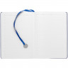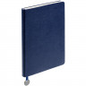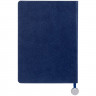 Ежедневник с гибкой обложкой, выполнен из материал La Fite, синий НН, дополнен ляссе в цвет обложки с металлическим шильдом.