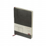 Лаконичная модель в ярком исполнении: гибкая обложка серого цвета с контрастной или в цвет обложки нашивкой. Выполнен из качественной и прочной искусственной кожи, крепление внутреннего блока - книжный переплет, закладка- ляссе. Углы обложки скруглены.