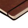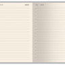 Отличительной особенностью ежедневника является горизонтальная, скрепляющая обложку и блок, тоненькая резинка. Оригинальное решение позволяет раскрывать ежедневник на 180 градусов и вести записи у самого края корешка. Для фиксации второй резинки, не позволяющей ежедневнику раскрываться, предусмотрена выемка на обложке. Обложка тонка, но фактурность придает ей элемент брутальности, а бархатистое нанесение на ее оборотной стороне- благородство и статусность. Картонный карман для визиток, записок, бумаг – функциональная деталь и приятная дополнительная опция. Бумажный блок изготовлен из бумаги бежевого цвета, плотностью 70 г/кв.м и содержит 272 страницы, 23 из которых справочная информация.