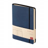 Отличительной особенностью ежедневника является горизонтальная, скрепляющая обложку и блок, тоненькая резинка. Оригинальное решение позволяет раскрывать ежедневник на 180 градусов и вести записи у самого края корешка. Для фиксации второй резинки, не позволяющей ежедневнику раскрываться, предусмотрена выемка на обложке. Обложка тонка, но фактурность придает ей элемент брутальности, а бархатистое нанесение на ее оборотной стороне- благородство и статусность. Картонный карман для визиток, записок, бумаг – функциональная деталь и приятная дополнительная опция. Бумажный блок изготовлен из бумаги бежевого цвета, плотностью 70 г/кв.м и содержит 272 страницы, 23 из которых справочная информация.