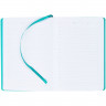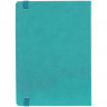 Ежедневник с твердой обложкой, выполнен из материала Latte, цвет морской волны II, обрез бирюзового цвета, дополнен ляссе бирюзового цвета и резинкой с металлическим шильдом.