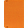 Ежедневник с твердой обложкой, выполнен из материала Latte, оранжевый ОО, обрез оранжевого цвета, дополнен ляссе оранжевого цвета и резинкой с металлическим шильдом.