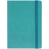 Ежедневник с твердой обложкой, выполнен из материала Latte, цвет морской волны II, обрез бирюзового цвета, дополнен резинкой и ляссе бирюзового цвета.