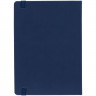 Ежедневник с твердой обложкой, выполнен из материала Latte, темно-синий ХХ, обрез темно-синего цвета, дополнен резинкой и ляссе темно-синего цвета.