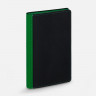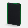 Ежедневник с гибкой обложкой выполнен из материала Nice Touch, черный АА и Soft Touch Ultra, зеленый FF, дополнен ляссе зеленого цвета.