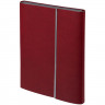 Ежедневник с гибкой обложкой, клапаном на магните и металлической отделкой клапана. Выполнен из материала Petrus, красный РР, дополнен серым ляссе.
