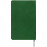 Ежедневник с гибкой обложкой, выполнен из материала Petrus, зеленый FF, дополнен серым ляссе с металлическим шильдом.