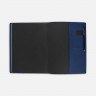 Ежедневник в суперобложке выполнен из материала La Fite, синий НН, дополнен ляссе и капталом черного цвета.
