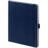 - ОбзорЕженедельник в твердой обложке выполнен из материала Nebraska, синий НН, дополнен резинкой, петлей для ручки и ляссе синего цвета.